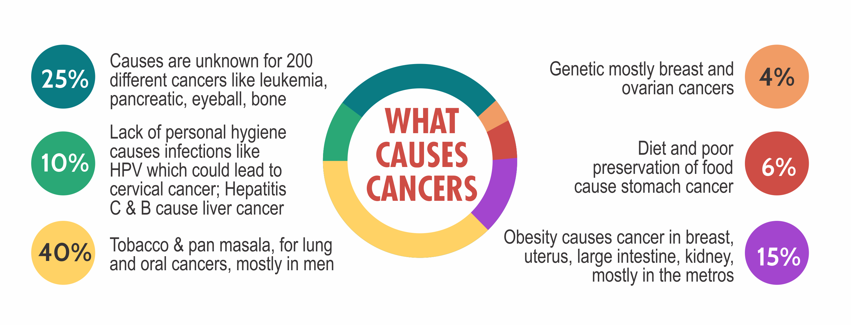 Many factors like diet, obesity, lack of exercise, stress, pollution, smoking and chewing pan / betel nut / areca nut, or consuming gutka or direct tobacco, are responsible for cancer. Amongst all the factors associated with cancer, use of tobacco has the greatest risk